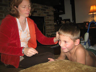 Noah has been suffering from chronic severe headaches(migraines) for the past year and after speaking with his Pediatrician on several occasions he finally referred Naoh to a Pediatric Neurologist to have him further evaluated and to investigate as to why he is getting them so frequently. After meeting with her and her doing multiple tests on Noah and passing them with flying colors, she didn't really have too many answers for us other than he suffers from migraines and that we could manage them with daily antidepressant meds and high blood pressure meds? No way! After talking with my brilliant sister-in-law Sarah....she had suggested accupuncture! She is now offically a "Doctor of Chinese Medicine" and jumped on the opportunity for her to treat Noah with her needles! Yikes right..........